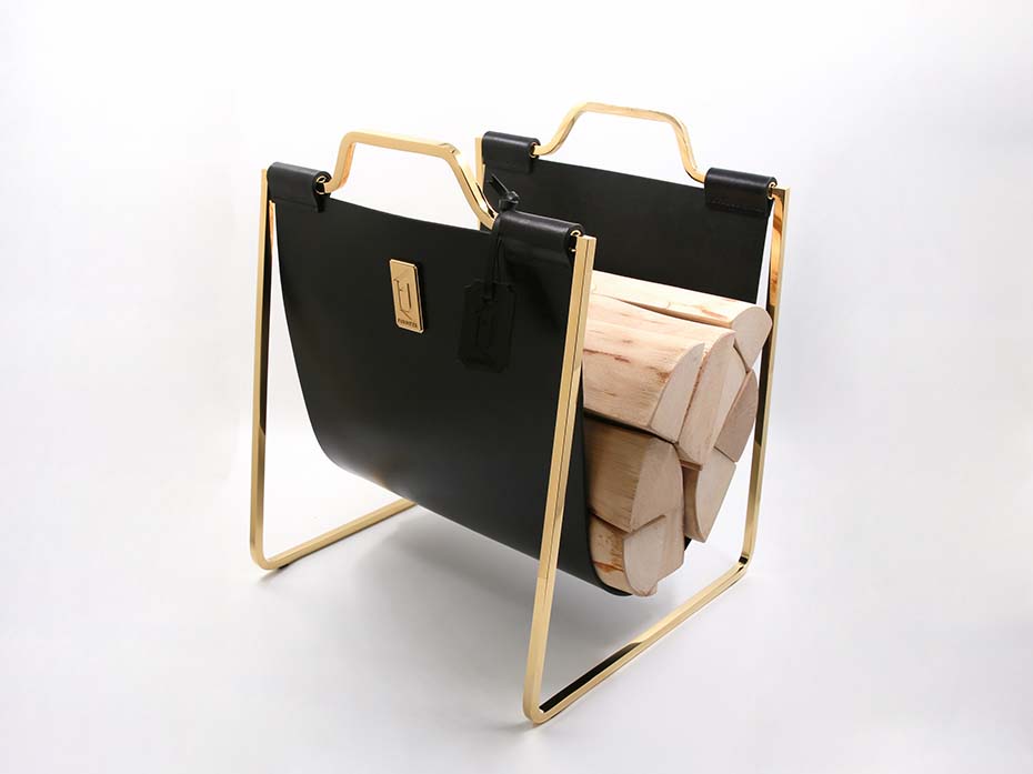 Дровница с кожаной вставкой FG-12032 позолота